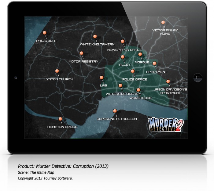 This is the map I created for Murder Detective 2: Corruption (published by Tournay Software). The game takes place both in the USA and the UK – this is the USA area.